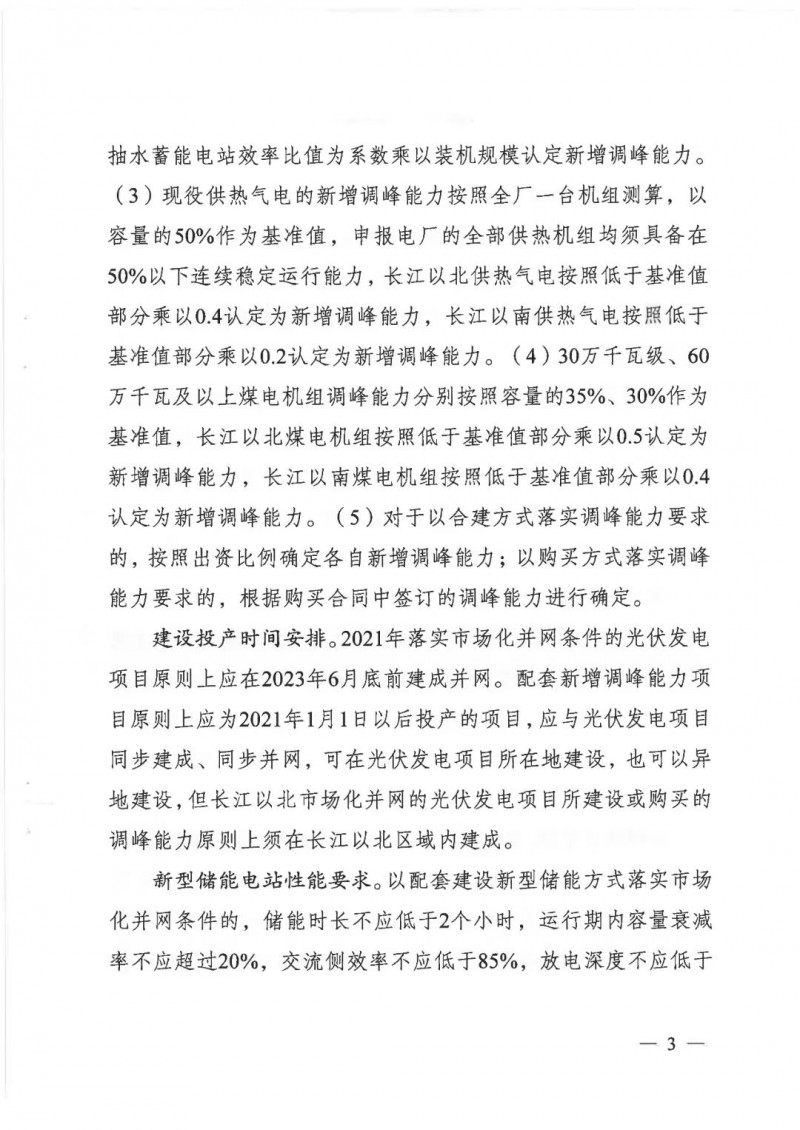 2021年落實(shí)市場(chǎng)化并網(wǎng)條件的光伏發(fā)電項(xiàng)目:原則上應(yīng)在2023年6月底前建成并網(wǎng)。配套新增調(diào)峰能力項(xiàng)目原則上應(yīng)為2021年1月1日以后投產(chǎn)的項(xiàng)目,應(yīng)與光伏發(fā)電項(xiàng)目同步建成、同步并網(wǎng),可在光伏發(fā)電項(xiàng)目所在地建設(shè),也可以異地建設(shè),但長江以北市場(chǎng)化并網(wǎng)的光伏發(fā)電項(xiàng)目所建設(shè)或購買的調(diào)峰能力原則上須在長江以北區(qū)域建成。