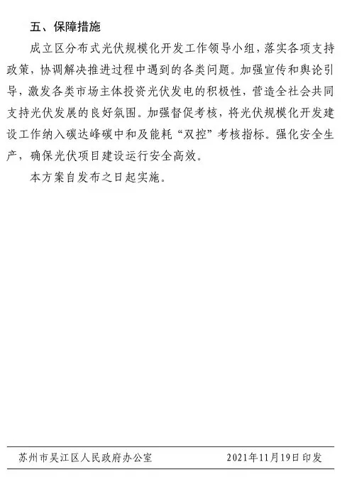 蘇州市吳江區(qū)人民政府發(fā)布印發(fā)吳江區(qū)分布式光伏規(guī)?;_(kāi)發(fā)實(shí)施方案的通知。