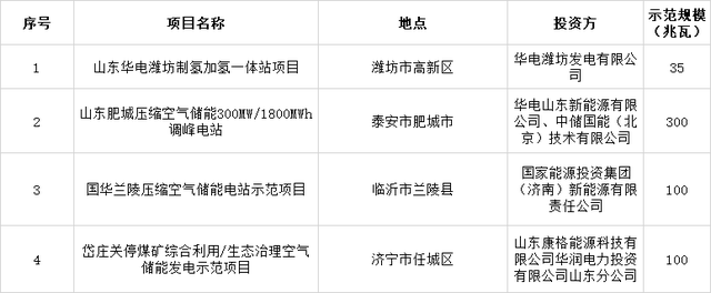 本此公布的示范項目總規(guī)模約達(dá)3.103GW,項目業(yè)主單位包括華能、大唐、華潤、三峽、華電、國家能源集團、國家電投、中核、中廣核、山東電工電氣、國網(wǎng)山東、特變電工等多家企業(yè)。除常規(guī)的鋰電池類項目外,此次還有壓縮空氣儲能、制氫加氫一體站、空氣儲能等新技術(shù)示范項目。