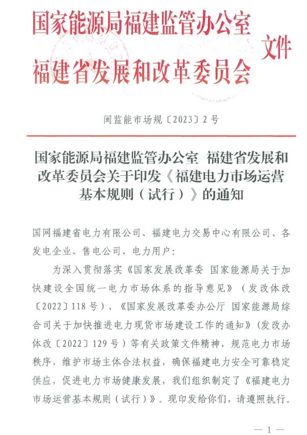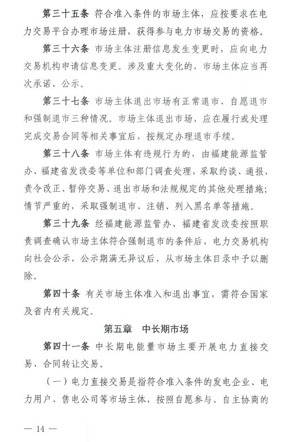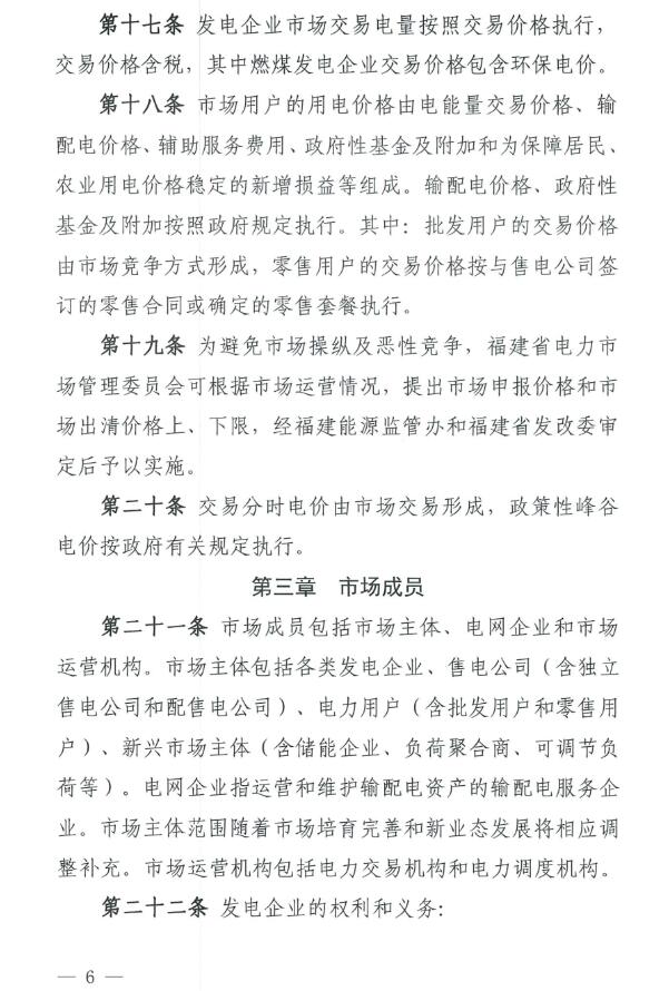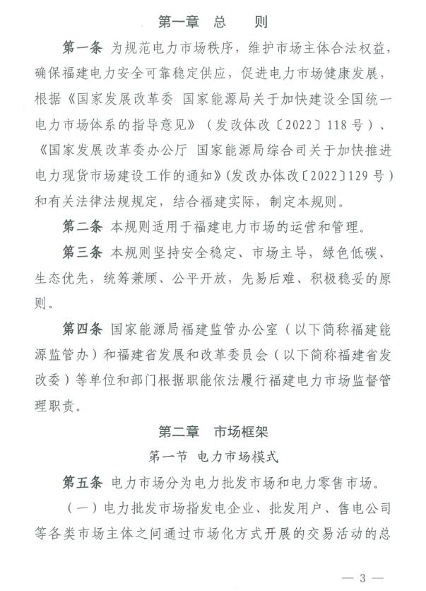 《福建電力市場(chǎng)運(yùn)營(yíng)基本規(guī)則(試行)》原文如下: