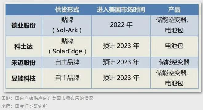 寧德時代為 Tesla、Fluence 主要供應(yīng)商之一,受益較高;科士達(dá)為 SolarEdge 主要電池代工供應(yīng)商;德業(yè)股份綁定美國經(jīng)銷商 Sol-Ark;禾邁股份、昱能科技(微逆)、科陸電子(電池、PCS)等均在美國有出貨。