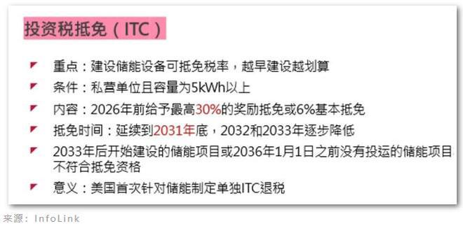 對于儲能來說,這是美國首次針對獨(dú)立儲能進(jìn)行投資稅抵免(Investment Tax Credit, ITC)。