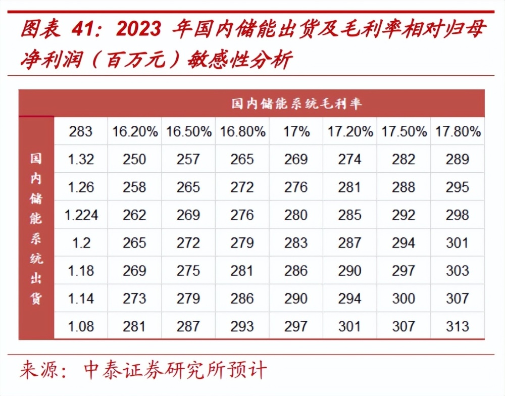 同時,新產(chǎn)能逐步落地,2022 年 7 月, 公司宜春儲能生產(chǎn)基地一期年產(chǎn)能 3GWh 正式投產(chǎn),預(yù)計二期 5GW 產(chǎn) 能于 23 年底開始投產(chǎn),待項(xiàng)目滿產(chǎn)后總產(chǎn)能達(dá) 8GW。我們預(yù)計 22、23、 24 年國內(nèi)儲能系統(tǒng)出貨量分別為 0.06、1.20、2.40GWh,海外儲能系 統(tǒng)出貨量分別為 0.14、1.80、3.50GWh。因儲能系統(tǒng)價格調(diào)整滯后于電 池價格調(diào)整,在電池降價過程中儲能系統(tǒng)盈利提升,預(yù)計國內(nèi)的儲能業(yè) 務(wù)毛利率分別為 15%、17%、19%;海外較國內(nèi)毛利率略高。