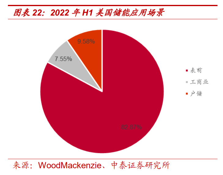 1) 美國:儲能維持高景氣,裝機(jī)量持續(xù)增長。新型儲能維持高增速,2022 年 H1 裝機(jī)量高企。根據(jù) CNESA 數(shù)據(jù)顯 示,2022H1 美國儲能新增規(guī)模達(dá) 2.3GW/5.9GWh,同比增長 188%、 157%。其中表前儲能貢獻(xiàn)了主要裝機(jī)量,2022H1 表前儲能新增裝機(jī) 量達(dá) 1.9GW/5.0GWh,工商業(yè)為 171MW/393MWh,戶儲為 217MW/ 517MWh。美國儲能產(chǎn)業(yè)機(jī)制成熟,預(yù)計將保持高景氣,根據(jù) WoodM ackenzie 預(yù)計,美國 2023-2026 年新增裝機(jī)量分別為 28.4GWh、45. 6GWh、50.7GWh、52.4GWh,預(yù)計 2022-2026 年新增裝機(jī)量 CAGR 可達(dá) 40.36%。