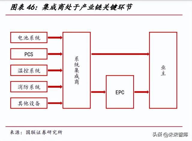 儲(chǔ)能系統(tǒng)的構(gòu)成相對(duì)復(fù)雜,集成商扮演安全第一責(zé)任人的身份。儲(chǔ)能電站系統(tǒng)是 由儲(chǔ)能電池、儲(chǔ)能變流器(PCS)、溫控系統(tǒng)、消防系統(tǒng)、升壓系統(tǒng)、電池管理系統(tǒng) (BMS)、能量管理系統(tǒng)(EMS)和其他諸多設(shè)備集成的復(fù)雜系統(tǒng)。儲(chǔ)能系統(tǒng)集成商 向上游對(duì)接大量設(shè)備供應(yīng)商,將各子系統(tǒng)高效、安全地集成為儲(chǔ)能系統(tǒng)產(chǎn)品,向下游 業(yè)主或 EPC 承包商交付并提供后續(xù)的質(zhì)保服務(wù),是儲(chǔ)能項(xiàng)目安全的第一責(zé)任人。