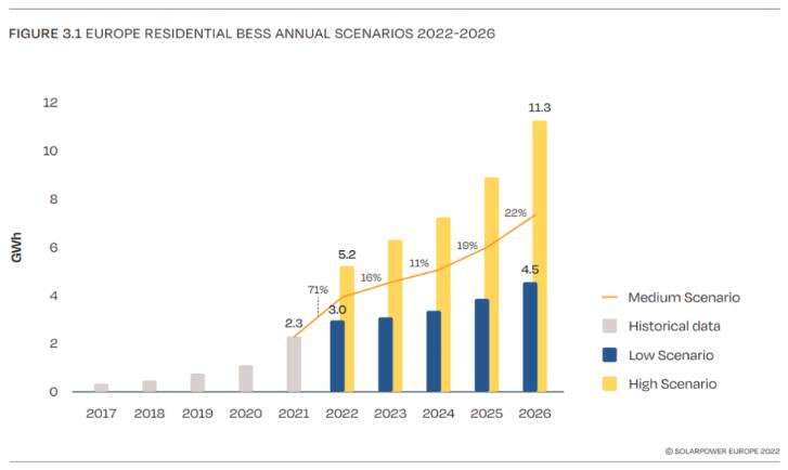 歐洲光伏產(chǎn)業(yè)協(xié)會(huì)《歐洲戶(hù)用儲(chǔ)能市場(chǎng)展望報(bào)告 2022-2026》裝機(jī)量預(yù)測(cè)