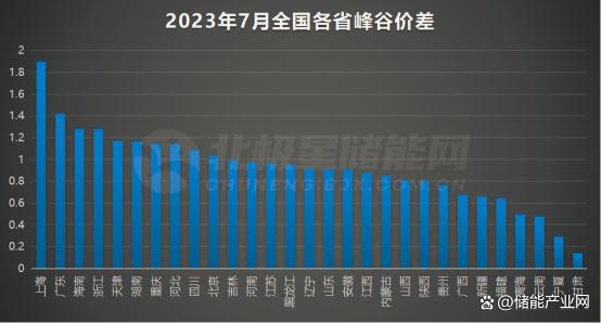 2023年7月全國各省日峰谷價差如下圖所示: