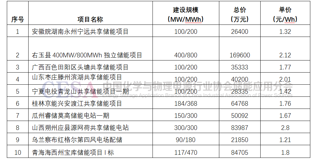 不同電化學(xué)儲(chǔ)能電站建設(shè)費(fèi)用差別較大,引發(fā)諸多疑惑,以近期公示的部分項(xiàng)目EPC價(jià)格為例,應(yīng)用場景為新能源側(cè)配建儲(chǔ)能和電網(wǎng)側(cè)儲(chǔ)能,中標(biāo)單價(jià)分布在1.21~2.8元/Wh區(qū)間,均采用磷酸鐵鋰電池,其中中標(biāo)單價(jià)最高的是山西朔州應(yīng)縣源網(wǎng)荷共享儲(chǔ)能電站EPC總承包項(xiàng)目,建設(shè)規(guī)模300MW/300MWh,中標(biāo)價(jià)格為83987萬元,單位造價(jià)2.8元/Wh;作為對(duì)比,烏蘭察布風(fēng)電項(xiàng)目紅格爾第四風(fēng)電場配套儲(chǔ)能EPC項(xiàng)目建設(shè)規(guī)模90 MW /180MWh,中標(biāo)價(jià)格為21850萬元,單位造價(jià)僅為1.21元/Wh。
