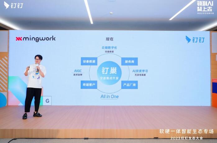 明我的分布式解決方案不僅為用戶提供了硬件服務(wù),還在釘釘平臺(tái)上進(jìn)行了軟件服務(wù)的升級。相較于傳統(tǒng)的硬件銷售模式,這次的方案體現(xiàn)了數(shù)字化的深度。在釘釘上,用戶無需再通過PPT來了解產(chǎn)品,而是可以通過在線CAD和數(shù)字展廳與產(chǎn)品互動(dòng)。一旦提出需求,他們就可以看到一個(gè)在線數(shù)字方案。結(jié)合AIGC技術(shù),用戶能夠迅速了解產(chǎn)品的細(xì)節(jié)。