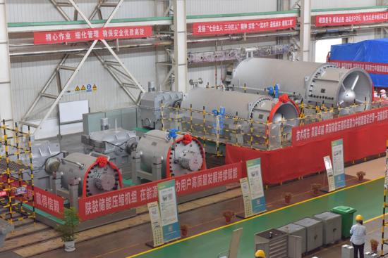 9月20日上午,全球首套非補(bǔ)燃型300MW級壓縮空氣儲能項(xiàng)目核心裝備壓縮機(jī)組下線發(fā)運(yùn)儀式在陜鼓集團(tuán)臨潼制造園區(qū)總裝車間舉行。該項(xiàng)目是陜鼓與中能建數(shù)字科技集團(tuán)有限公司(以下簡稱“能建數(shù)科”)強(qiáng)強(qiáng)合作,以能建數(shù)科湖北應(yīng)城300MW壓縮空氣儲能項(xiàng)目為依托,在世界級壓縮空氣儲能領(lǐng)域的一次全新探索。項(xiàng)目建成后,將助力非補(bǔ)燃壓縮空氣儲能領(lǐng)域?qū)崿F(xiàn)儲能規(guī)模世界第一、單機(jī)功率世界第一、轉(zhuǎn)換效率世界第一。