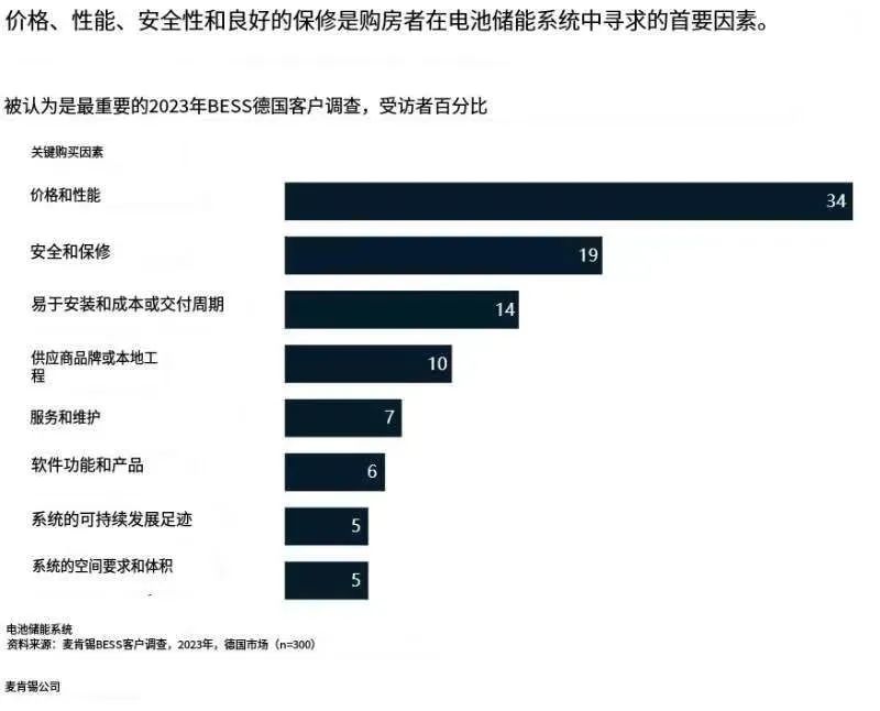 定制產(chǎn)品將幫助住宅客戶實現(xiàn)自給自足、優(yōu)化自耗和降低峰值功耗等目標,這意味著該領域將擁有更高的利潤。在對替代能源購買的消費者調(diào)查中表明,用戶對電化學儲能產(chǎn)品的興趣將歸結為幾個因素,首先是價格、安全性和易于安裝等。