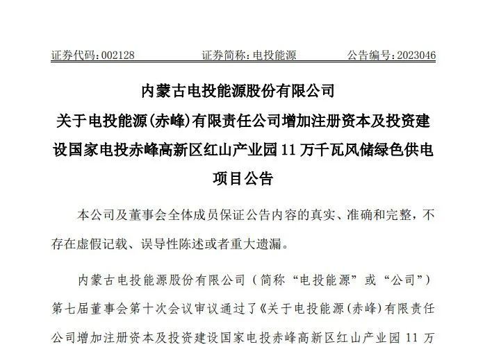 電投能源:計劃在赤峰建設16.25MW/65MWh磷酸鐵鋰+0.25MW/1MWh全釩液流電池混合儲能系統(tǒng)項目電投能源(002128.SZ)發(fā)布公告,公司擬對電投能源(赤峰)有限責任公司增加注冊資本,并投資建設國家電投赤峰高新區(qū)紅山產業(yè)園11萬千瓦風儲綠色供電項目。擬將該公司注冊資本由450萬元增加至1.56億元。