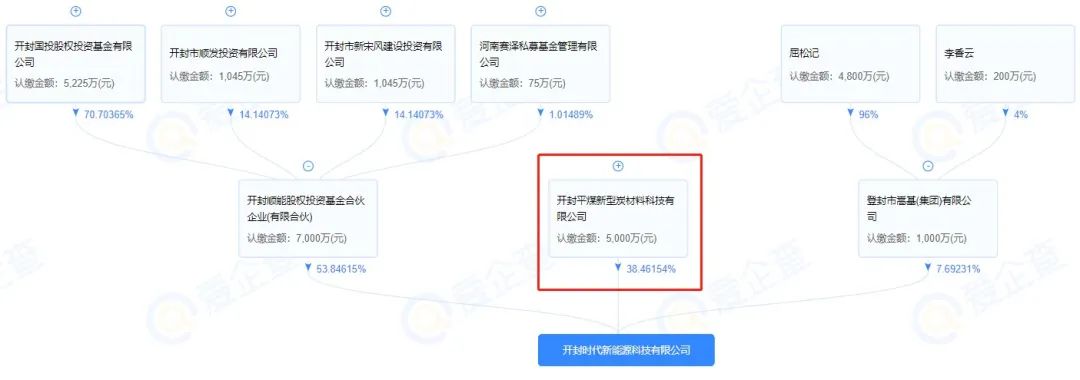 工商信息顯示,開封時代的控股股東及間接持股企業(yè)包括了開封市國有資本投資運營集團有限公司、開封國有資產投資經營集團有限公司、開時國投股權投資基金有限公司、中國平煤神馬控股集團有限公司等多家國有資本、國有企業(yè)。