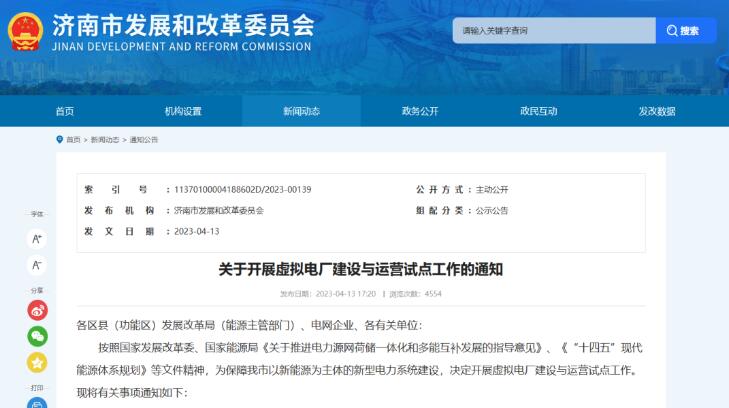 濟(jì)南開展虛擬電廠建設(shè)運(yùn)營試點工作 來源:濟(jì)南市發(fā)改委