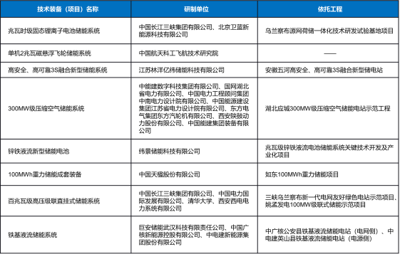 圖:第三批能源領域首臺(套)重大技術裝備(項目)名單——新型儲能