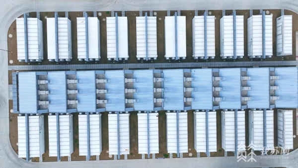 88個(gè)白色電池倉(cāng),就是一個(gè)個(gè)儲(chǔ)能電池,加起來足有11.088萬千瓦,存儲(chǔ)容量19.36萬千瓦時(shí),相當(dāng)于一個(gè)19萬千瓦的中型發(fā)電廠1個(gè)小時(shí)發(fā)的電,可以同時(shí)滿足2.6萬戶家庭一天用電。