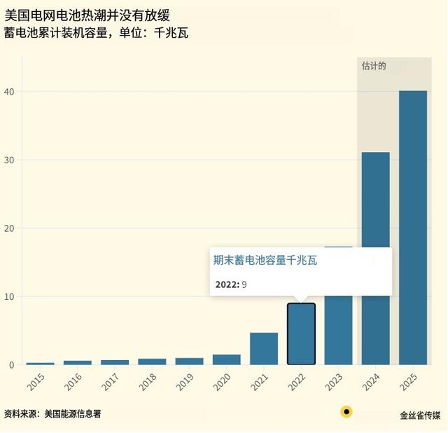 據(jù)美國能源信息署統(tǒng)計(jì),2023年末,美國電網(wǎng)安裝的電池儲(chǔ)能裝機(jī)總量,已達(dá)到驚人的17.3GW。這個(gè)數(shù)據(jù),比2022年底時(shí)的9GW增長了近一倍!