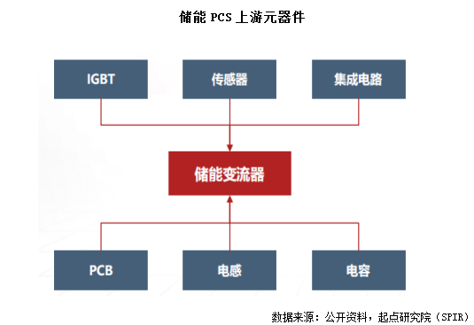儲能PCS的上游主要是電子元器件,其中IGBT(絕緣柵雙極型晶體管)是核心部件,IGBT的性能決定了儲能PCS的性能。在儲能PCS中,材料成本占比約93%,其中占比最高的是結(jié)構(gòu)件(26.7%),其次是電感(13.8%)和半導(dǎo)體元器件(11.4%)。