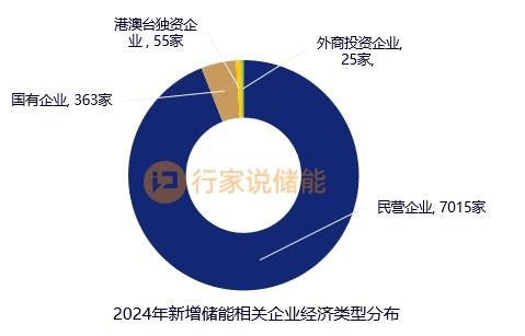 7570家新設(shè)儲(chǔ)能公司中,民營(yíng)企業(yè)7015家,占92.67%,國(guó)有企業(yè)363家,港澳臺(tái)獨(dú)資企業(yè)55家,外商投資企業(yè)25家。