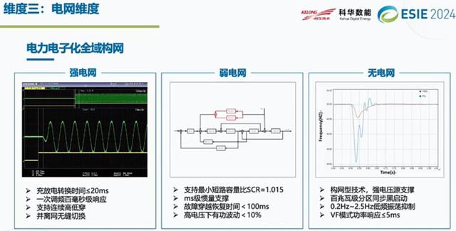 在強(qiáng)電網(wǎng)狀態(tài)下,我們?nèi)绾文軌蜃龅揭淮握{(diào)頻。在弱電網(wǎng)下,我們怎么支撐在低短路比下面的SCR的應(yīng)用。甚至在無電網(wǎng)的時(shí)候,怎么能夠自主構(gòu)建電網(wǎng),甚至實(shí)現(xiàn)黑啟動(dòng)等等。