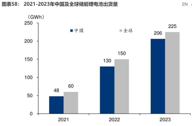 首先,鋰電池儲(chǔ)能在新型儲(chǔ)能裝機(jī)中占據(jù)絕對(duì)主導(dǎo)地位,將在較長(zhǎng)時(shí)期作為儲(chǔ)能建設(shè)的主力,因此,儲(chǔ)能也成為鋰電池廠(chǎng)商兵家必爭(zhēng)之地。根據(jù)GGII,2023年全球儲(chǔ)能鋰電池出貨225GWh,同比增長(zhǎng)50%,其中我國(guó)儲(chǔ)能鋰電池出貨206GWh,同比增長(zhǎng)58%。國(guó)內(nèi)企業(yè)出貨在全球占比由2022年的86.7%提升至2023年的91.6%,寧德時(shí)代、比亞迪、億緯鋰能、瑞浦蘭鈞、海辰儲(chǔ)能等企業(yè)出貨領(lǐng)跑行業(yè)。
