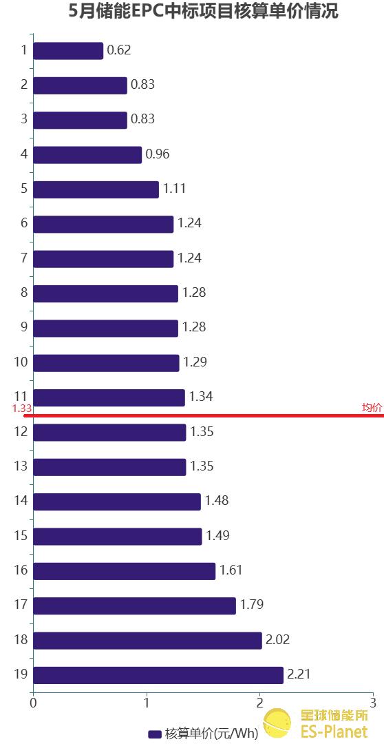 ※ 5月儲能EPC中標(biāo)單價情況 來源:星球儲能所
