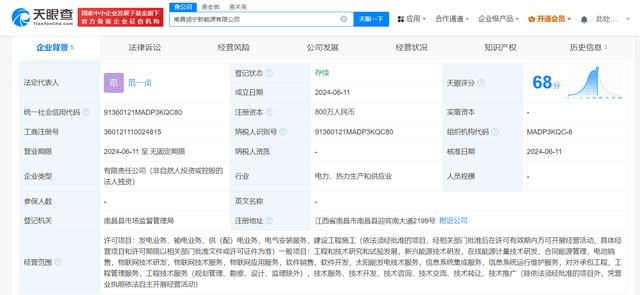 近日,南昌潤(rùn)寧新能源有限公司成立,法定代表人為范一貞,注冊(cè)資本800萬(wàn)人民幣,經(jīng)營(yíng)范圍含工程和技術(shù)研究和試驗(yàn)發(fā)展、新興能源技術(shù)研發(fā)、在線能源計(jì)量技術(shù)研發(fā)、合同能源管理、電池銷(xiāo)售等。股權(quán)全景穿透圖顯示,該公司由時(shí)代綠色能源有限公司全資持股,后者為寧德時(shí)代(300750)全資子公司。