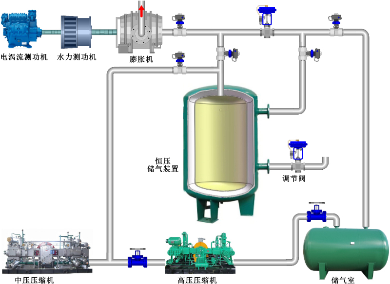 恒壓壓縮空氣儲能試驗平臺示意圖 (圖片來源:中國科學院工程熱物理研究所)