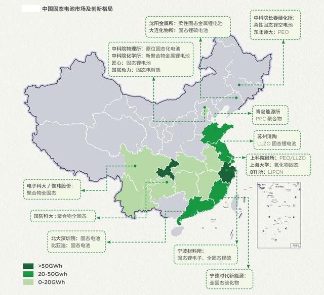 全國固態(tài)電池產(chǎn)能主要分布在廣東、長三角、重慶、北京等有較強科研實力和完善汽車產(chǎn)業(yè)鏈布局的地區(qū)。