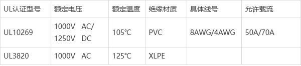 *華坤新能源儲能模組連接配線可選用UL10269和UL3820,允許電流過載50A或70A