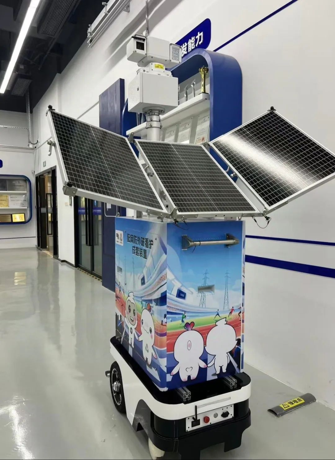 ▲南方電網廣東廣州供電局以科技手段為十五運會織密智慧保電網絡,防外破移動監(jiān)測裝置為賽事場館安穩(wěn)用電保駕護航。(廣州供電局 供圖)