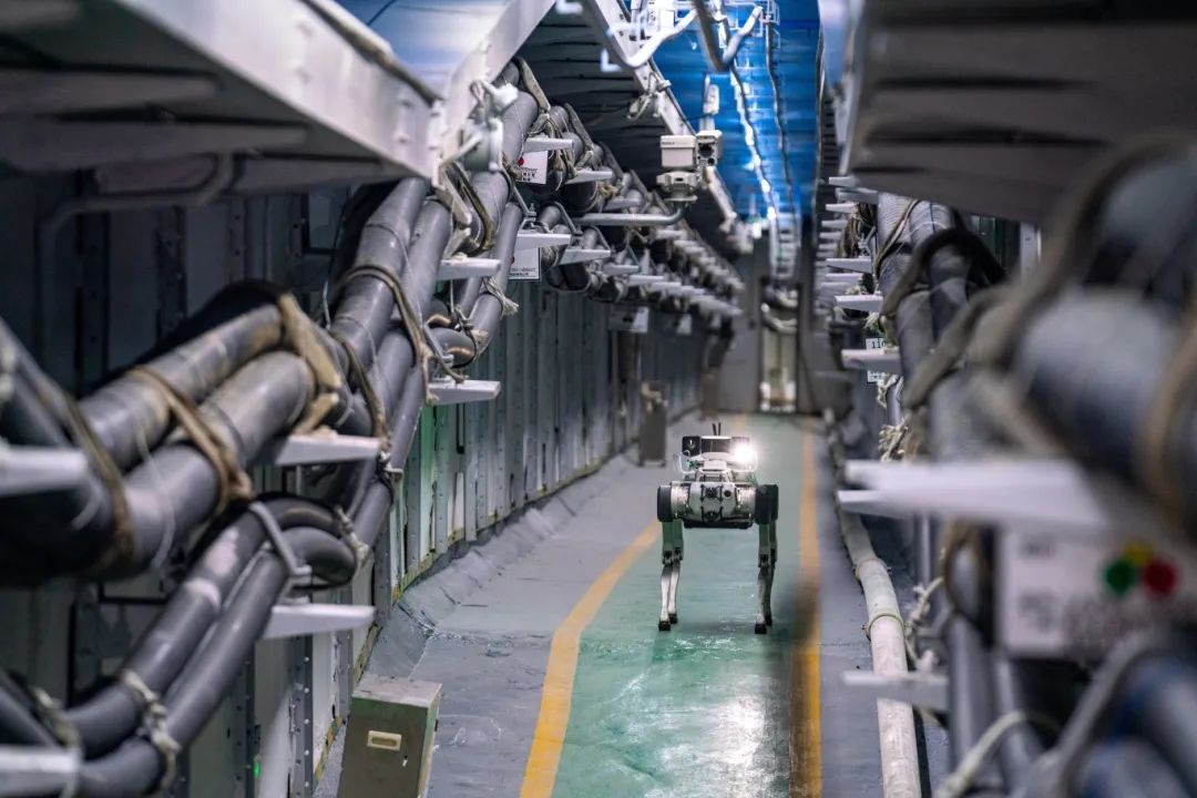 ▲在變電站、輸電管廊,通過電鴻物聯(lián)操作系統(tǒng)實(shí)現(xiàn)了機(jī)器狗設(shè)備自主協(xié)同智能巡視。(周卓英 攝)