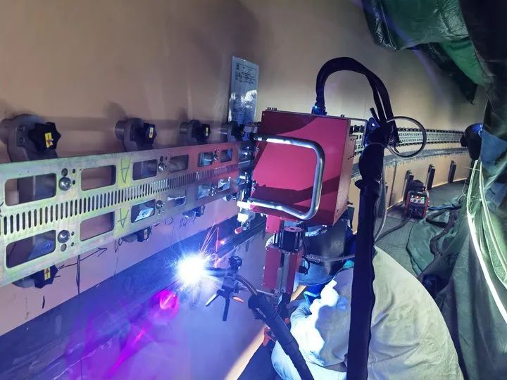 在三澳核電項(xiàng)目,智能激光跟蹤MAG自動(dòng)焊技術(shù)覆蓋鋼襯里底板、筒體到穹頂車間預(yù)制和現(xiàn)場安裝的全流程系列化、多工況場景的全面應(yīng)用,形成了具有完全自主知識(shí)產(chǎn)權(quán)的鋼襯里建造高效智能焊接先進(jìn)技術(shù)體系,具有顯著的經(jīng)濟(jì)社會(huì)效益。三澳核電一期項(xiàng)目累計(jì)焊縫長度約3763m,共拍片2930張,一次合格率為97.2%,焊接質(zhì)量穩(wěn)定。