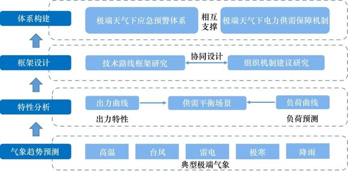 在供需結(jié)構(gòu)方面,基于極端氣象特征、氣象發(fā)展趨勢研究成果,分析極端天氣下新能源波動、負荷可調(diào)節(jié)的電力供需平衡場景,攻關(guān)電力供需保障技術(shù),構(gòu)建電力系統(tǒng)應(yīng)急組織機制,提出電力系統(tǒng)在極端天氣下的應(yīng)急預(yù)警體系。