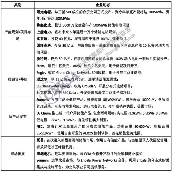 除了開展若干儲能項目,三季度,還有一些儲能企業(yè)相繼發(fā)布了產(chǎn)能規(guī)劃、投融資并購、新產(chǎn)品、市場拓展等信息,以增強(qiáng)自身資金儲備、技術(shù)儲備、提高產(chǎn)品競爭力、拓展儲能發(fā)展新渠道、探尋儲能發(fā)展新模式。這些動態(tài)主要包括: