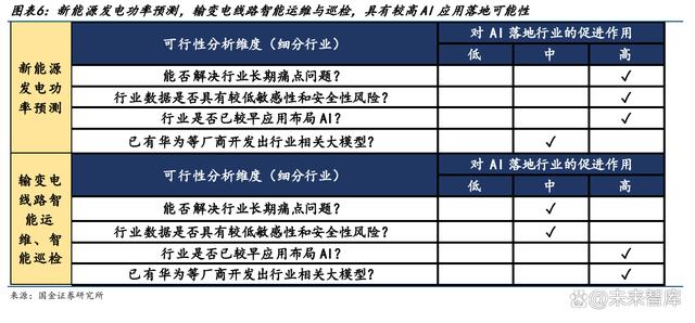 面向行業(yè)主要衡量的維度有: 1) 能否解決長期痛點問題:電網(wǎng)承擔最主要的功能是維持用電側(cè)與電網(wǎng)側(cè)動態(tài)平衡,而 新能源裝機比例上升無疑加大了電力調(diào)度與消納的難度,因此若 AI 加持能有效解決 消納相關(guān)細分環(huán)節(jié)的痛點問題,相關(guān)政策導向和資金投入將有望向此環(huán)節(jié)傾斜。 2) 行業(yè)數(shù)據(jù)是否具有較低敏感性和安全性風險:大模型需要通過海量數(shù)據(jù)訓練,而電網(wǎng) 行業(yè)本身涉及到民生用電與數(shù)據(jù)安全性問題,部分信息不便用于大規(guī)模公開訓練,因 此若某一細分環(huán)節(jié)數(shù)據(jù)敏感性較低或用戶已授權(quán)使用,則大模型將更快接入落地。 3) 行業(yè)是否已較早應用布局 AI/技術(shù)實踐:電網(wǎng)多個應用場景較早地應用了 AI 技術(shù),例 如輸變電線路運維和巡檢方面,2011 年開始,部分企業(yè)就已開展了通過 AI 對電力設 備外表缺陷進行識別、預測、跟蹤運行等研究探索。 4) 已有華為等廠商開發(fā)出行業(yè)相關(guān)大模型:例如華為盤古 CV 視覺大模型,已在 L2 級 細分場景上,推出基于電力大模型的無人機電力巡檢、電力缺陷識別等場景模型。