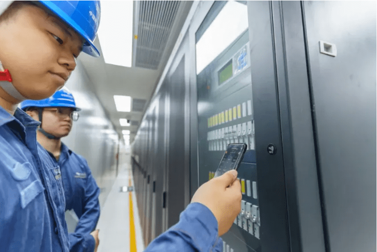 深圳供電局基于開源鴻蒙自主研制通信機(jī)房數(shù)智運(yùn)維系統(tǒng),提高了機(jī)房智能管理水平。圖為供電人員使用鴻蒙手機(jī)“碰一碰”機(jī)房設(shè)備,就能掌握該設(shè)備實(shí)時(shí)數(shù)據(jù)。(黃海鵬攝)