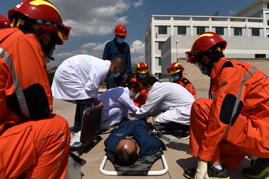 同時(shí),成立了1支應(yīng)急救援基干分隊(duì)在物資部院內(nèi)處搭設(shè)兩座防震帳篷,安裝照明設(shè)施,對立即按照現(xiàn)場指揮迅速救出被困人員、轉(zhuǎn)運(yùn)傷員并對傷員開展了緊急救護(hù)。