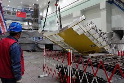 中國電力網(wǎng)訊 11月5日,隨著清脆的哨聲響起,國網(wǎng)甘肅劉家峽水電廠2號機(jī)組定子機(jī)座緩緩吊入機(jī)坑,標(biāo)志著該機(jī)組機(jī)電安裝工作正式開始。