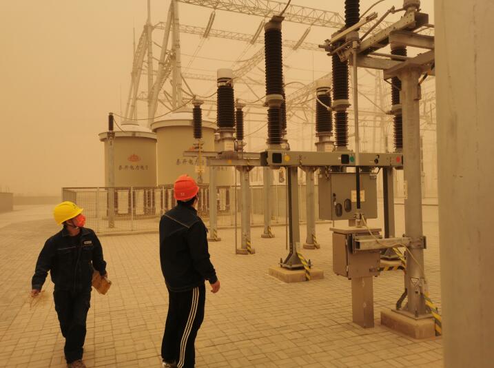 中國電力網(wǎng)訊 3月14日,受冷空氣影響,內(nèi)蒙古多地遭遇沙塵暴襲擊,平均風力達6級以上,空氣質(zhì)量達到重度污染。為積極應(yīng)對惡劣天氣對電網(wǎng)安全造成的影響,接到預(yù)警后,烏海超高壓供電公司迅速響應(yīng),多措并舉應(yīng)對沙塵暴天氣,積極做好各項防范工作。