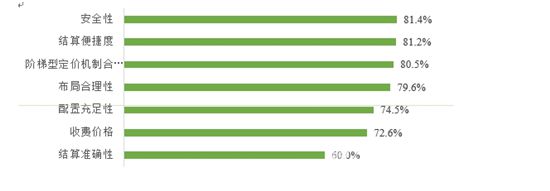 四是充電樁安全性、結算便捷性滿意度較高,滿意度均在80%以上,充電價格、結算準確性有待進一步提升。由此表明,受訪者在充電收費價格和結算準確性方面期待較高,期望進一步優(yōu)化充電收費價格,提高結算準確性。