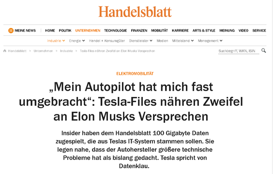 綜合美國媒體和特斯拉的通報(bào)來看,特斯拉是在今年5月10日從德國媒體《德國商報(bào)》那里得知了這場信息泄露事件的。當(dāng)時(shí)《德國商報(bào)》主動(dòng)聯(lián)系了特斯拉,稱有人給該報(bào)獲得了大量來自特斯拉內(nèi)部的保密信息,但報(bào)紙不會(huì)發(fā)布其中的個(gè)人信息,也不會(huì)違法使用這些信息。