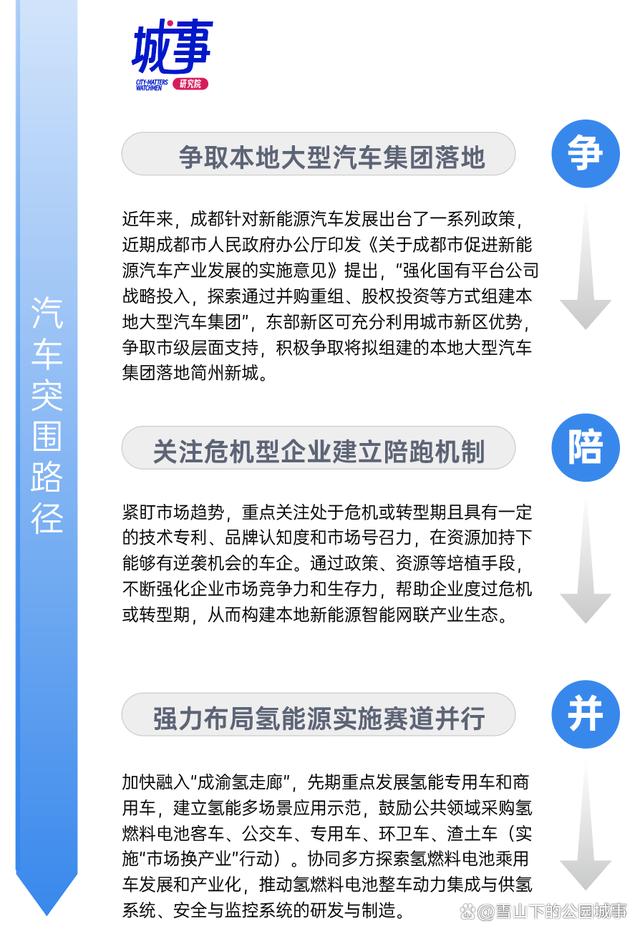 1.爭(zhēng)取本地大型汽車集團(tuán)落地。近年來(lái),成都針對(duì)新能源汽車發(fā)展出臺(tái)了一系列政策,近期成都印發(fā)《關(guān)于成都市促進(jìn)新能源汽車產(chǎn)業(yè)發(fā)展的實(shí)施意見(jiàn)》提出,“強(qiáng)化國(guó)有平臺(tái)公司戰(zhàn)略投入,探索通過(guò)并購(gòu)重組、股權(quán)投資等方式組建本地大型汽車集團(tuán)”,東部新區(qū)可充分利用城市新區(qū)優(yōu)勢(shì),爭(zhēng)取市級(jí)層面支持,積極爭(zhēng)取將擬組建的本地大型汽車集團(tuán)落地簡(jiǎn)州新城。