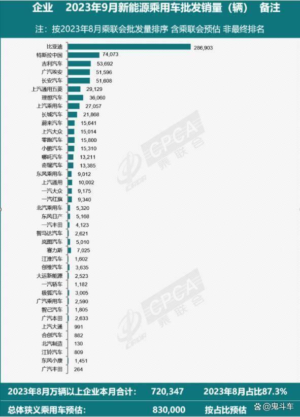 10月8日,“崔東樹”公眾號發(fā)布乘聯(lián)會2023年9月新能源乘用車廠商批發(fā)銷量快訊。從這份數(shù)據(jù)中看到,9月份,新能源市場還是處于增長狀態(tài),但整體增幅并不沒有想象中那么高歌猛進(jìn)。