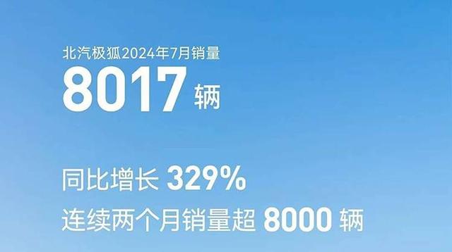 極狐汽車公布了其7月銷量為8017輛,同比增長329%,表現(xiàn)出了強(qiáng)勁的增長勢頭。至此,極狐已連續(xù)兩個月銷量超8000輛。