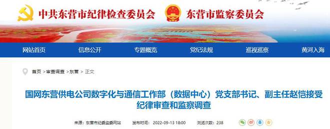 據(jù)廣饒縣紀(jì)委監(jiān)委消息:國網(wǎng)東營供電公司數(shù)字化與通信工作部(數(shù)據(jù)中心)黨支部書記、副主任趙愷涉嫌嚴(yán)重違紀(jì)違法,目前正接受中共國網(wǎng)東營供電公司紀(jì)委紀(jì)律審查和廣饒縣監(jiān)委監(jiān)察調(diào)查。