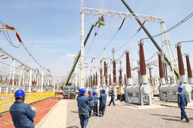 4月9日,在330千伏眉峴變電站,作業(yè)人員對站內(nèi)開關(guān)進行更換,這是國網(wǎng)平?jīng)龉╇姽臼状巫灾鲗嵤┳冸娬?30千伏設(shè)備改造工程,標(biāo)志著全業(yè)務(wù)核心班組建設(shè)水平邁上新臺階、實現(xiàn)新突破。