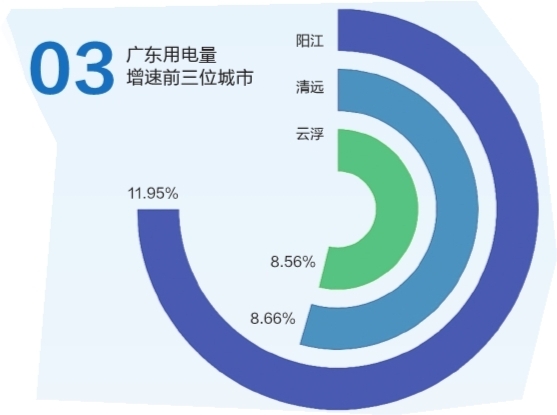 全國(guó)范圍看,廣東省累計(jì)用電量位居全國(guó)第一,增速高于全國(guó)平均水平。在全國(guó)排名前四位的用電大省中,廣東省的用電量和增速均分別高于江蘇、山東、浙江三省。