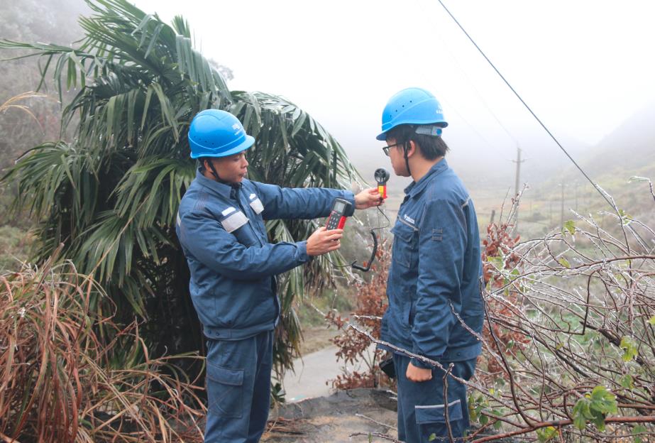 “線路有輕微覆冰,鐵塔塔基穩(wěn)固,螺絲沒有松動(dòng)。”12月1日,南方電網(wǎng)廣東韶關(guān)乳源供電局陳宇飛等人冒著凍雨來到大橋鎮(zhèn)中沖、三元、紅云等村莊,重點(diǎn)對高海拔地區(qū)、山頂、大風(fēng)口等特殊地段鐵塔和線路覆冰情況進(jìn)行巡視檢查,及時(shí)處置線路覆冰,確保通電正常。