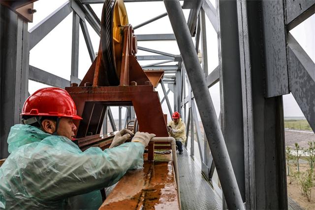 國網(wǎng)江蘇南通供電公司員工冒雨檢查閘口用電設(shè)備,確保安全運(yùn)行。